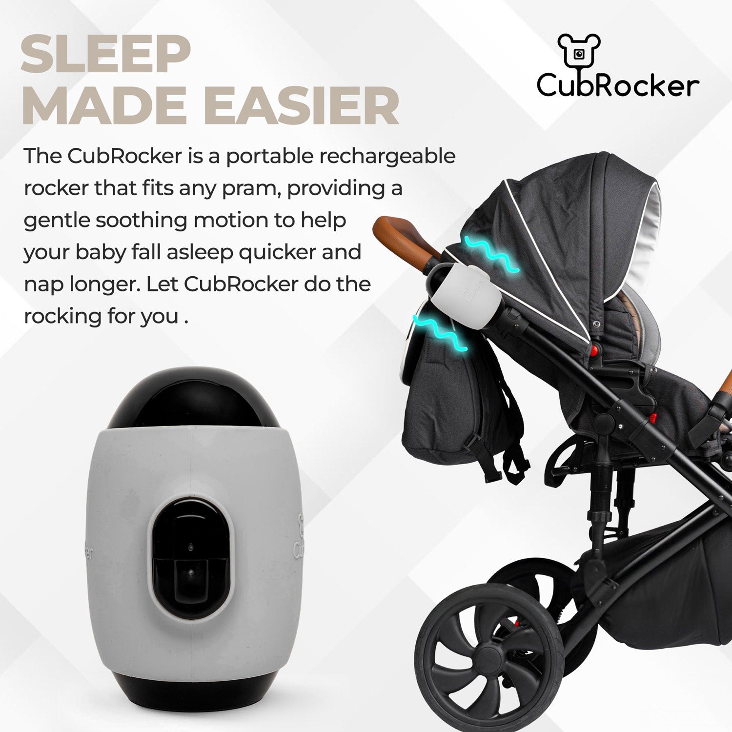 Make nap time easier wherever you go. The CubRocker gently rocks your baby’s pram or stroller, helping them drift off to sleep and stay settled for longer. Designed with tired parents in mind, it takes the effort out of constant rocking so you can enjoy a moment of calm while your little one relaxes.