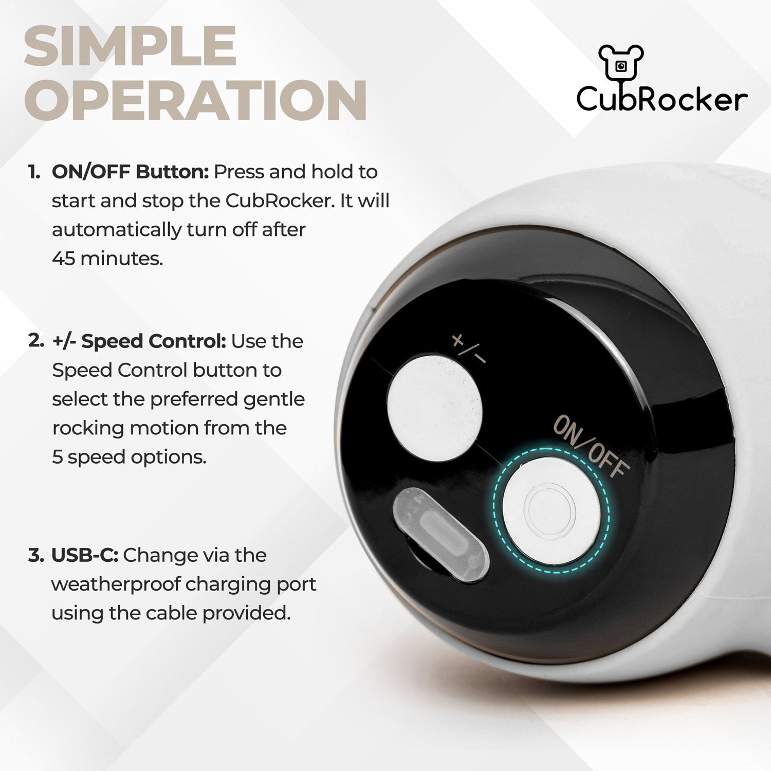 - Hands-free rocking - Enjoy a moment to relax while CubRocker does the work.